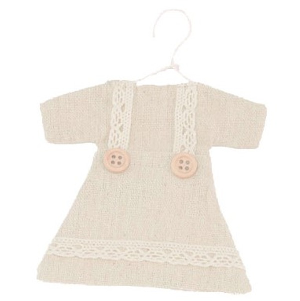 Originálna dekorácia v podobe ľanových šatôčok na vešiačiku pre dievčatko.