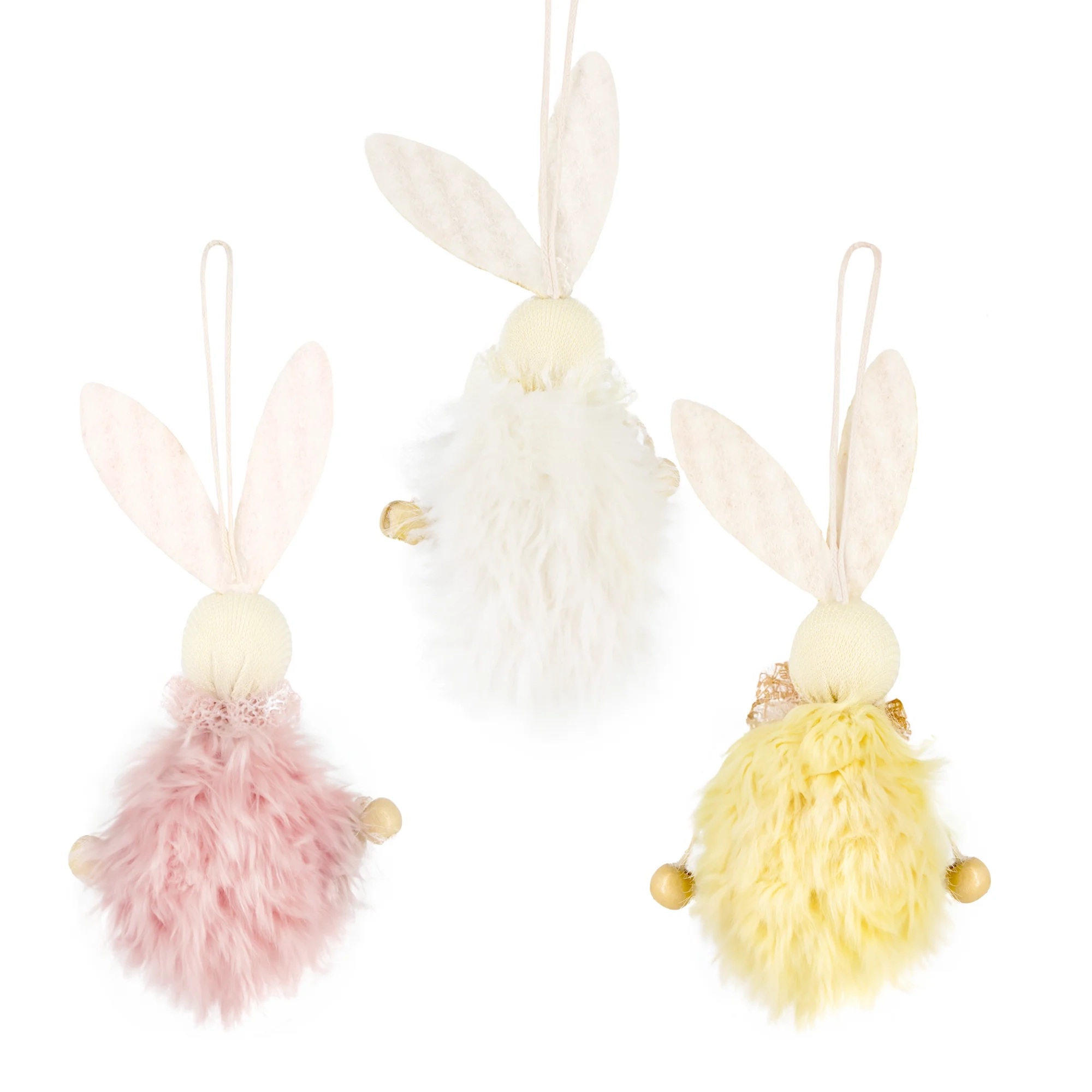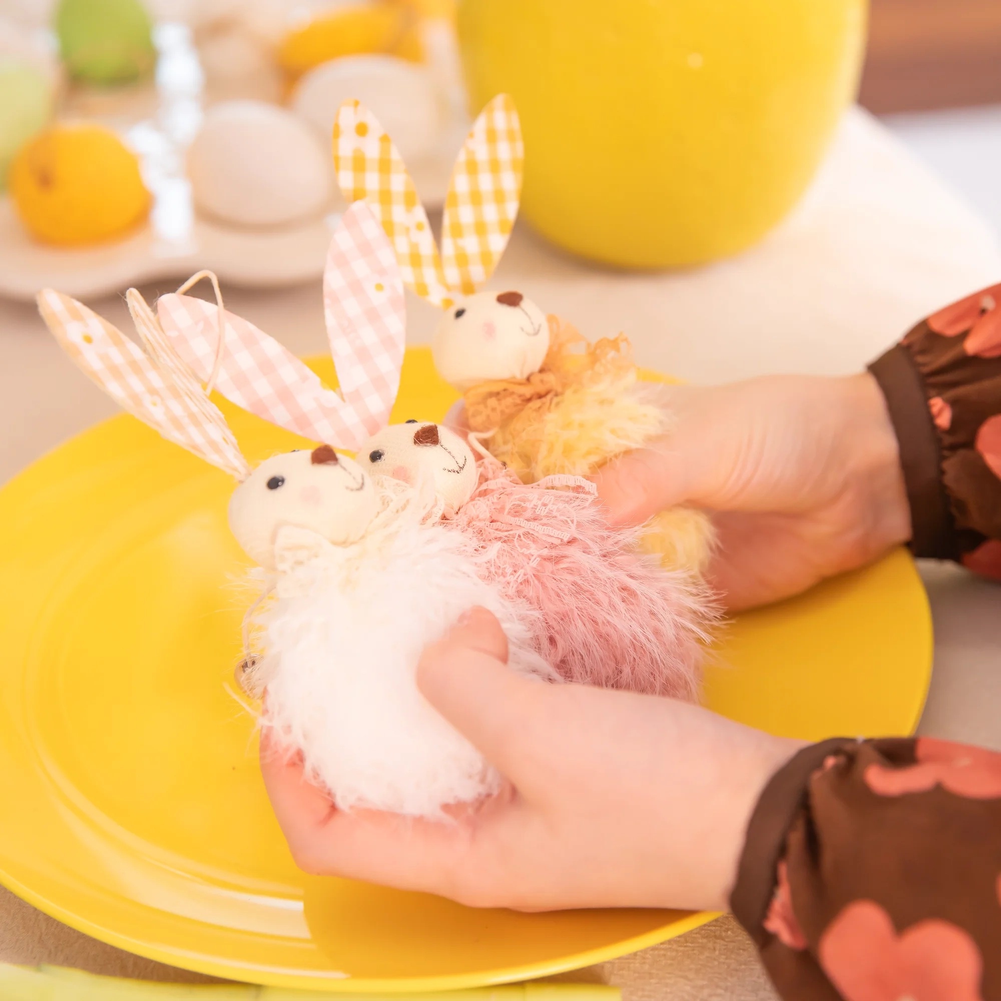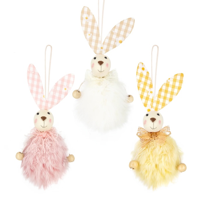 Závesná dekorácia veľkonočného zajačika s mäkkou kožušinou v kombinácii jemných farieb je ideálna na doladenie jarného a veľkonočného kútika doma, v detskej izbe alebo v triede.
