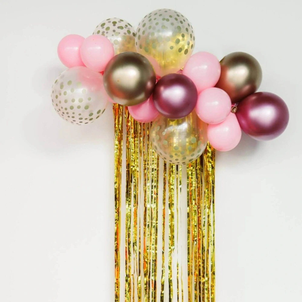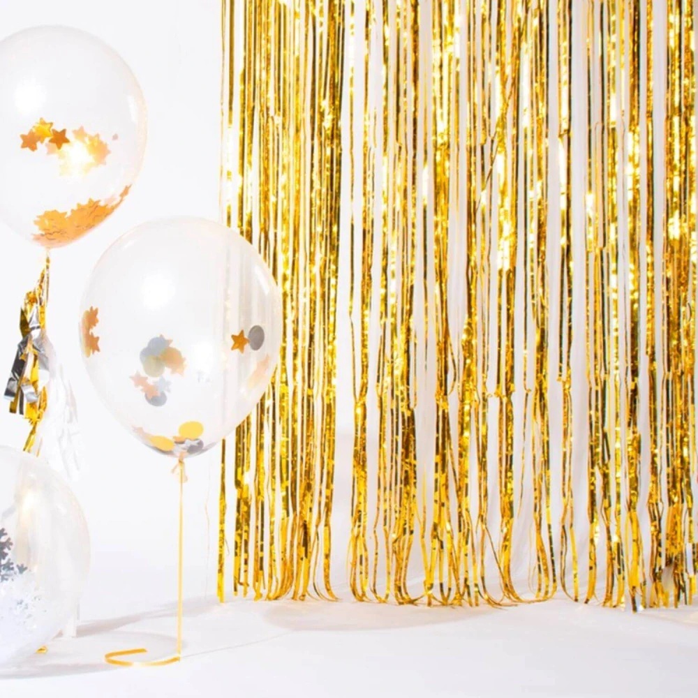 Fóliový záves môžete použiť aj vtedy, ak organizujete narodeninovú oslavu alebo svadbu v zlatej farbe a chcete mať originálnu výzdobu.