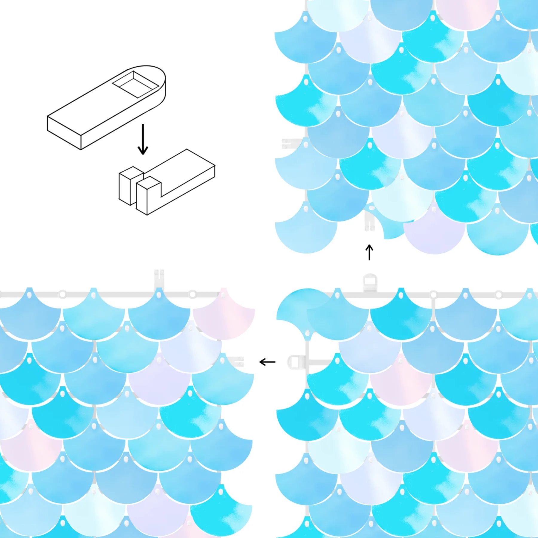 Séria plastových dekoratívnych panelov, ktoré možno použiť na vytvorenie atraktívneho pozadia na fotenie alebo skvelú párty. Každý panel sa skladá zo 72 jednotlivých dielov s dúhovými šupinami, ktoré pohybom vo vzduchu vytvárajú mimoriadne zaujímavý trojrozmerný efekt.