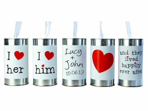 č. 55PWS1 strong> p> Svadobné plechovky za auto strong> p> S voľným miestom na prostrednej plechovke pre dopísanie iniciálok p> 5ks , strong> rozmery: 14x7cm p>