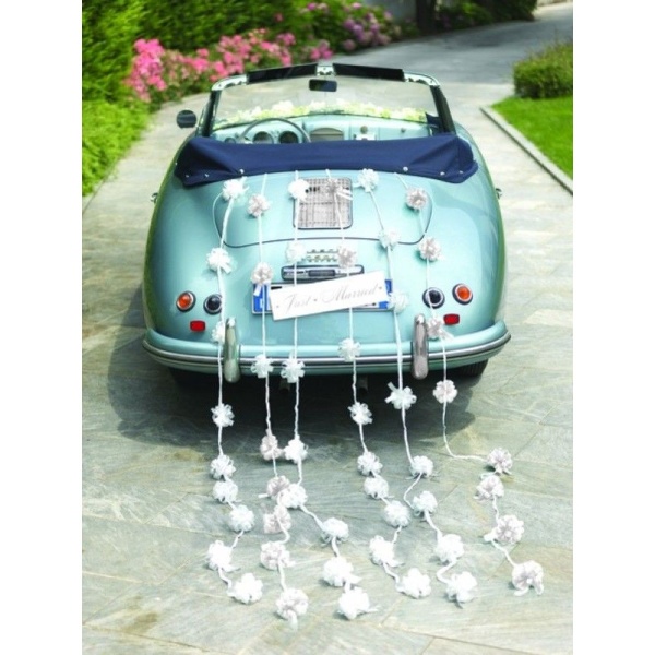 Tento set uzlov je pekný doplnok na svadobnú výzdobu. Sťahovacie kokardy sú tiež ideálna alternatíva, ako ozdobiť auto nevesty a ženícha namiesto plechoviek. Umiestnite ich niekoľko, aby ste vytvorili krásny kvetinový záves.